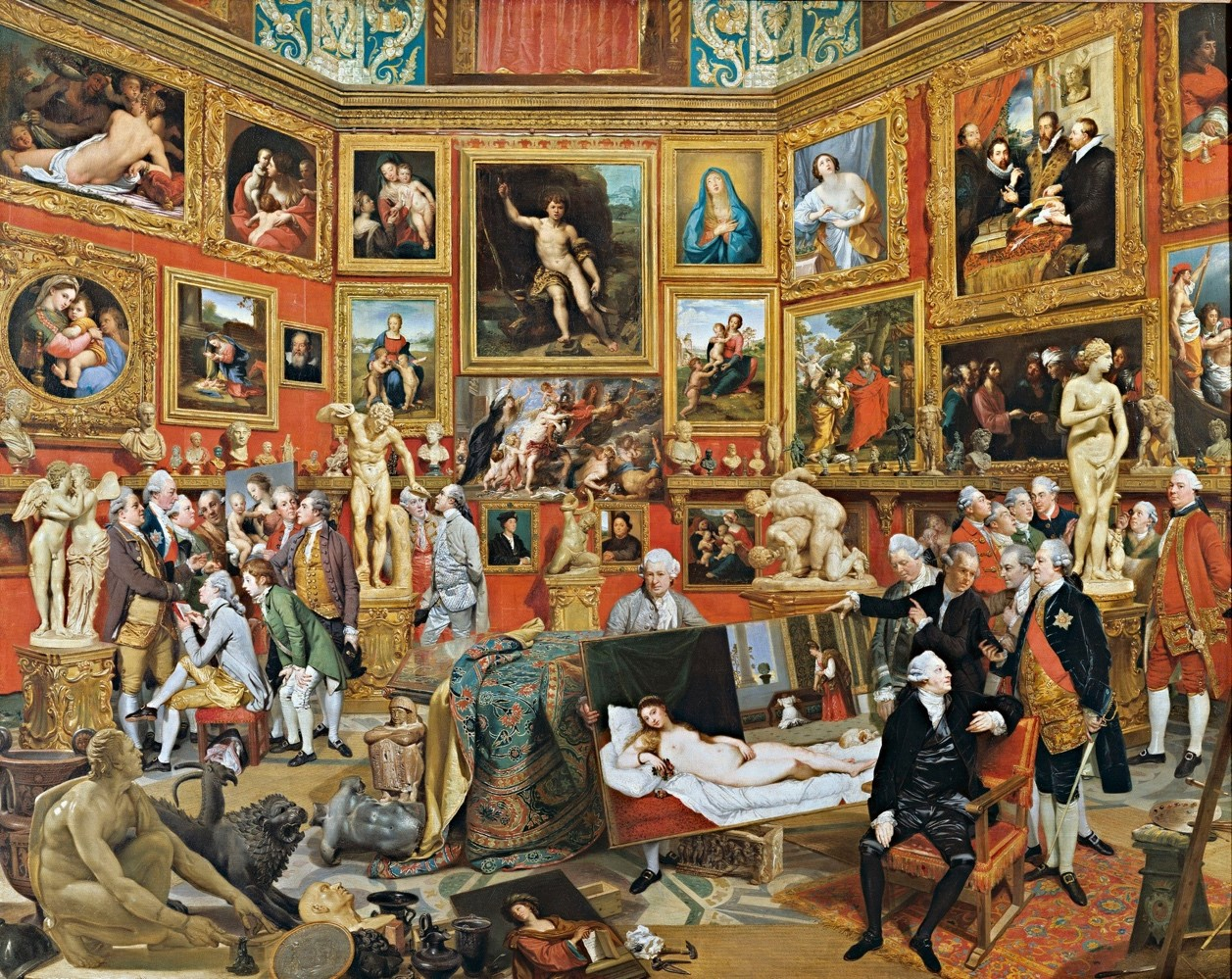 More glaring, but also to an extent more identifiable, are omissions today apparent in Johan Joseph Zoffany’s famous painting The Tribuna of the Uffizi, with its more crowded cast of mostly young touring British elites, likewise engaged in the conspicuous consumption of Italy’s classical past (fig. 2). Zoffany shows us a couple of tutors, artists, a diplomat, and a military officer, but again there are no women, no members of the lower classes, and no locals or Italians present but for the director of the Uffizi himself, Pietro Bastianelli, holding the famous Venus by Titian for the visitors’ inspection. Thanks to Bastianelli’s administration, we have archival records for the Uffizi in these years showing that visitors skewed aristocratic and foreign, with the British in the majority. But these same records show that many foreigners’ visits were by women, that a good number toured with Italians as guides or companions, and that more artists came on their own to study and copy works in the collection. The scene would also have included Italians from Florence and other cities and states, and among the Florentines there would have been nonelites, who may have ranged from dancers to cooks, from fishmongers (a certain Baccani pesciaiolo) to anonymous women upholsterers (tappeziera). The Uffizi’s archival records contain specifics for only about half of the visitors, and we can imagine that those who have been recorded are generally the more socially distinguished, but visits to the museum are also attested in servants’ journals that have been recently published.4